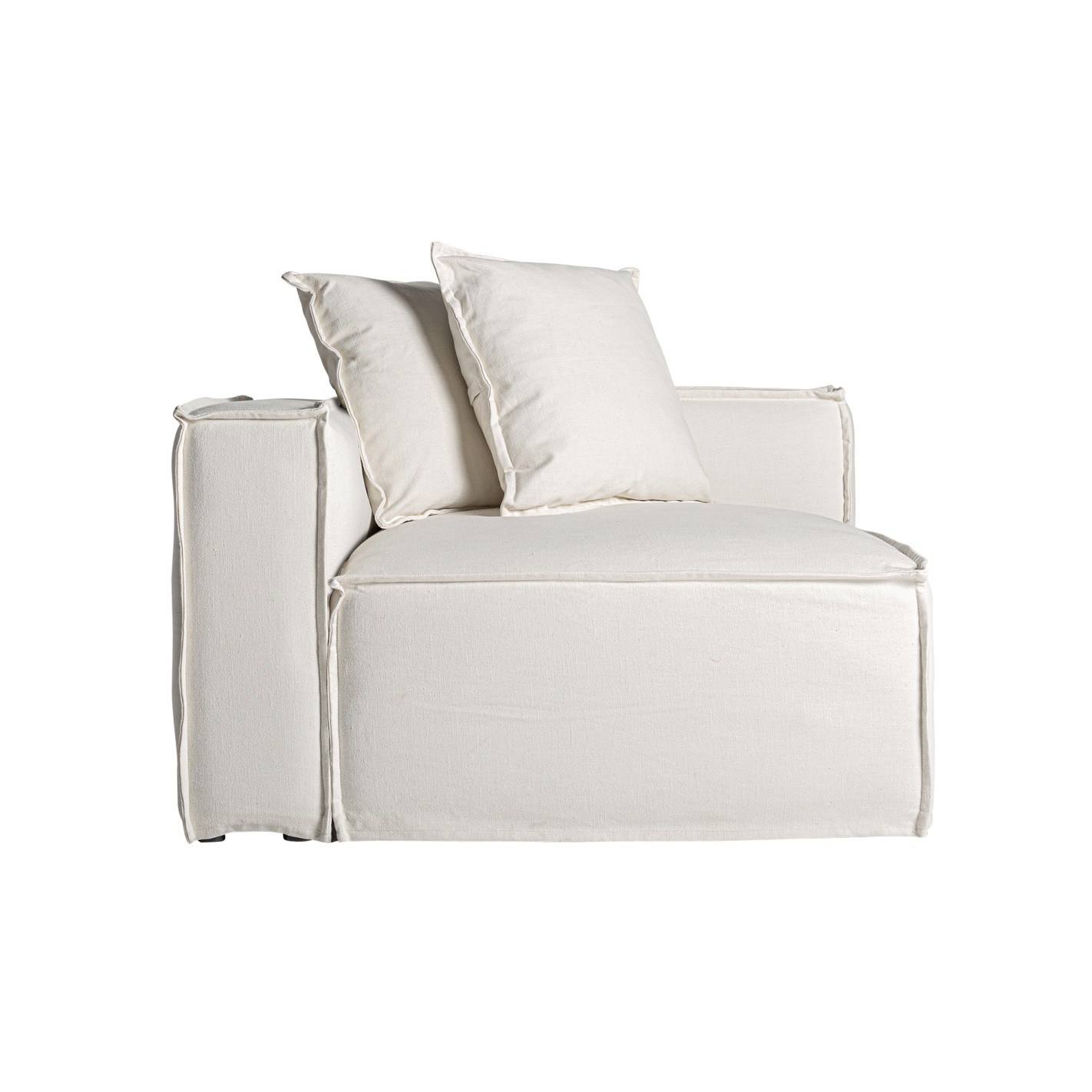Módulo sofá esquinero izquierda virolle de estilo colonial fabricado en lino en color blanco con acabado liso combinado con algodón y espuma. Producto desenfundable. Compatible con: 36088.